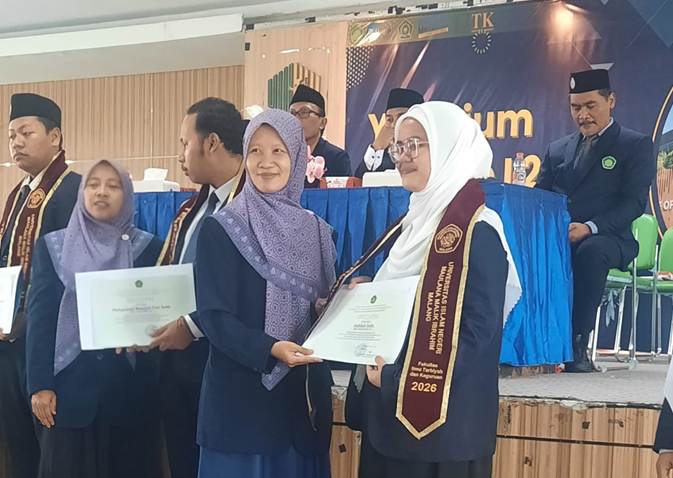 Malang (05/02/2026) — Fakultas Ilmu Tarbiyah dan Keguruan (FITK) UIN Maulana Malik Ibrahim Malang menyelenggarakan Yudisium Periode I 2026 Semester Genap Tahun Akademik 2025/2026. Sebanyak 12 mahasiswa Program Studi Tadris Matematika (TM) dinyatakan lulus, yang terdiri dari 10 perempuan dan 2 laki-laki, semuanya dinyatakan lulus dengan predikat “cumlaude”. Acara ini berlangsung dengan khidmat di Aula Gedung C UIN Maulana Malik Ibrahim Malang.