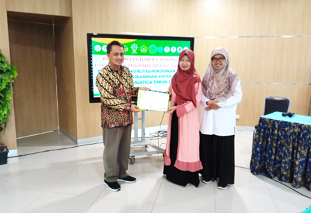 Gambar 5.6. Kegiatan penutupan lecture exchenge dan penyerahan sertifikat oleh Wakil Dekan 1 bidang akademik (Dr. Fatchurrohman, S.Ag., M.Pd) ke Dosen lecture exchange UIN Malang